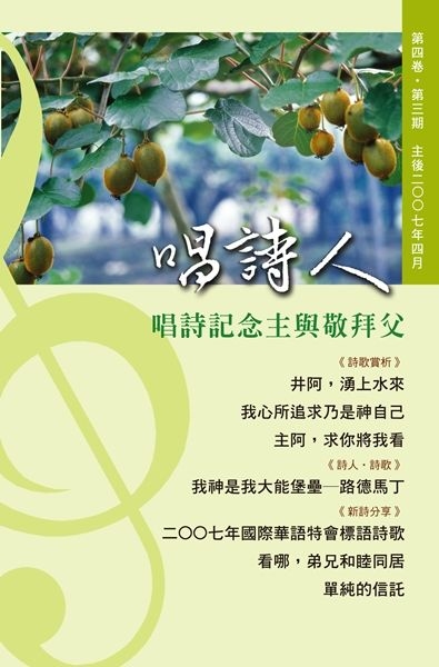本期特稿說到主日擘餅聚會記念主時,唱詩記念主與敬拜父。賞析三首詩歌:井阿湧上水來,我心所追求乃是神自己,主阿求你將我看。詩人詩歌則介紹『我神是我大能堡壘』的作者路德馬丁(Martin Luther),末了尚有七首新譯、新作詩歌。