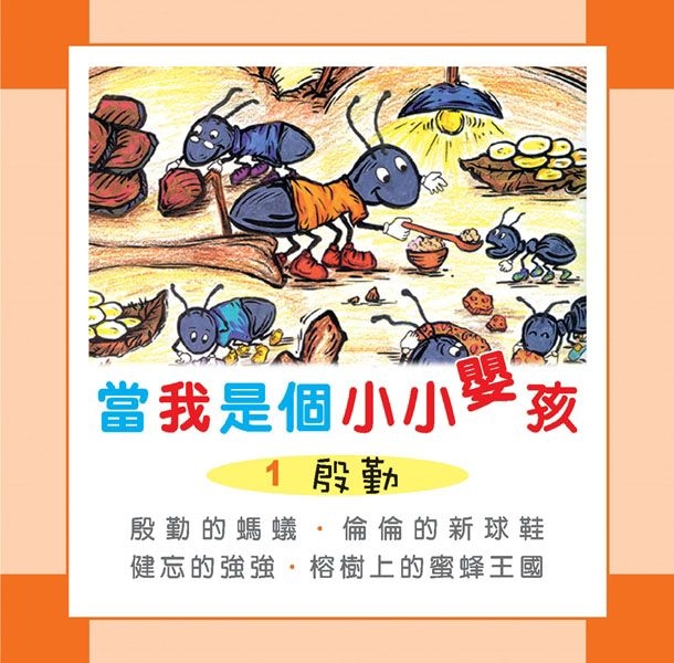內容配合兒童教材第一輯『當我是個小小嬰孩』親子圖畫書甲本一至二十三頁,全片共四個故事:殷勤的螞蟻、倫倫的新球鞋、健忘的強強、榕樹上的蜜蜂王國;以生動、活潑的兒童廣播劇方式,配上悅耳的兒詩,讓孩童邊看書,邊聆聽,進入教材的內容和負擔。又可作為床邊故事,伴孩童生活作息,在反覆聆聽中,潛移默化而養成殷勤的良好性格。