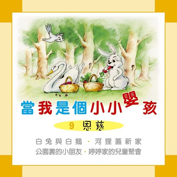內容配合兒童教材第一輯『當我是個小小嬰孩』親子圖畫書戊本二至三十三頁,全片共四個故事:白兔與白鵝、河狸蓋新家、公園裡的小朋友、婷婷家的兒童聚會;以生動、活潑的兒童廣播劇方式,配上悅耳的兒詩,可作為床邊故事,伴陪孩童生活作息,也可在家中或兒童排裡,讓孩童邊看書,邊聆聽;在反覆聆聽中,幫助幼兒建立恩慈的性格,說話、待人滿有恩慈,也會同情人,與別人分享。