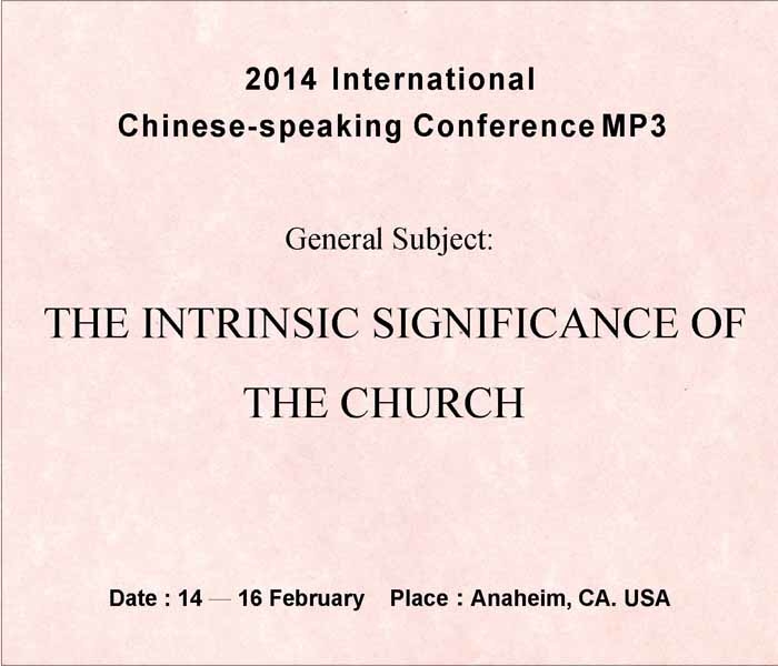 本信息為二○一四年二月十四至十六日,在美國加州安那翰舉行之國際華語特會『召會的內在意義』之信息內容。