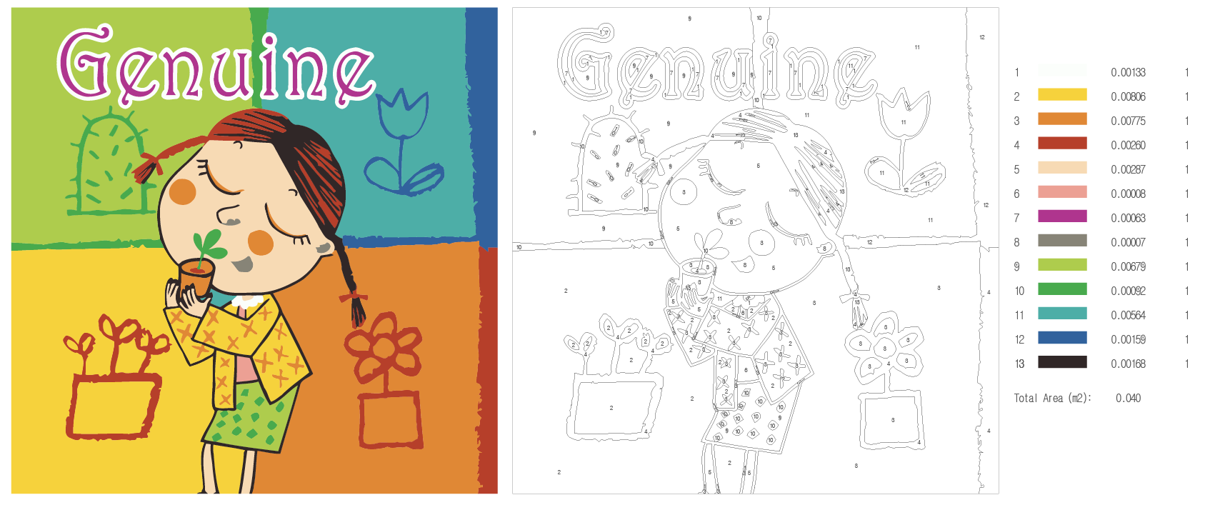 五、 畫布為便於繪圖時的輪廓辨識,會有陰影的設計,顏料中有一罐顏料是沒有標示數字的,要塗在畫布上陰影的部位。