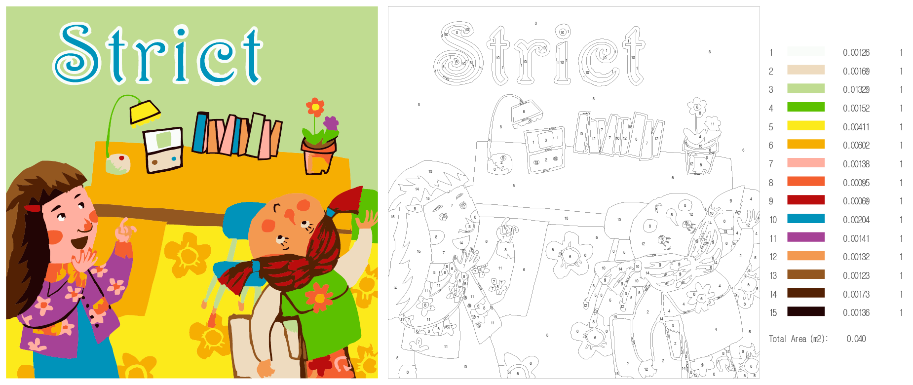 五、 畫布為便於繪圖時的輪廓辨識,會有陰影的設計,顏料中有一罐顏料是沒有標示數字的,要塗在畫布上陰影的部位。