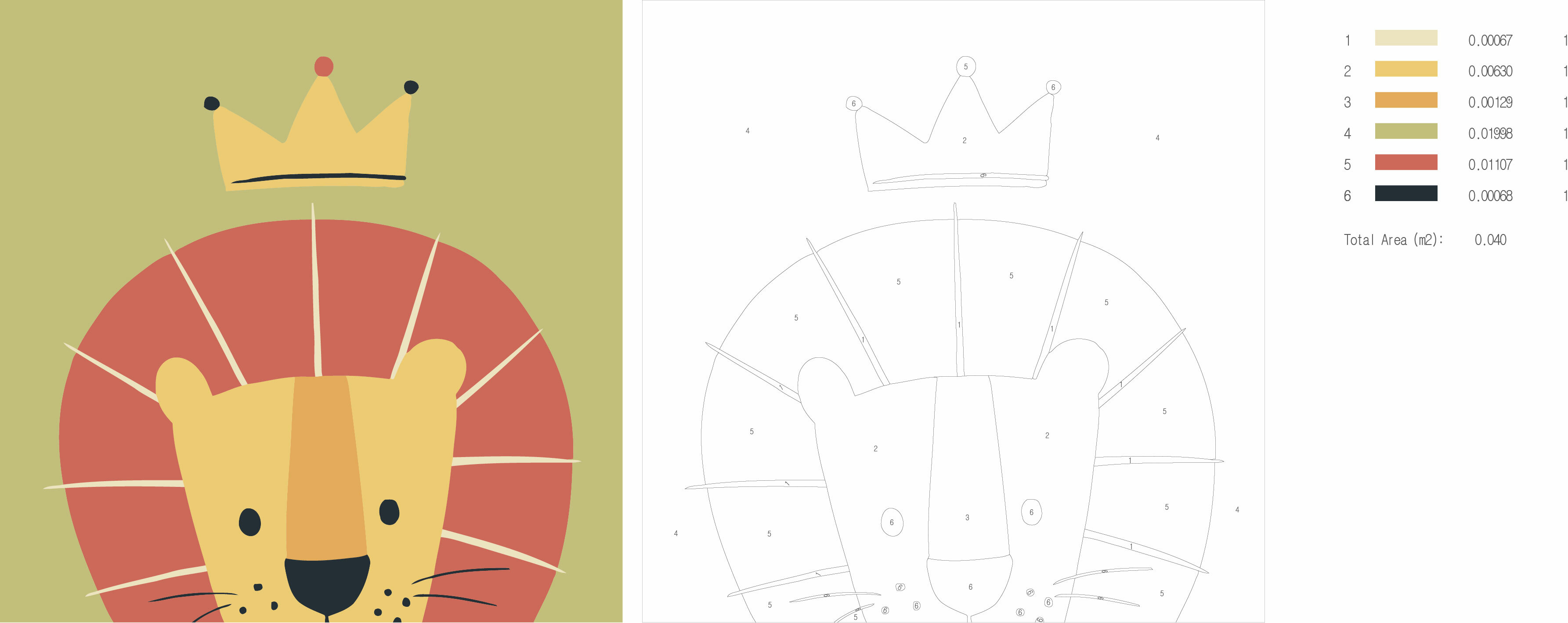 五、 畫布為便於繪圖時的輪廓辨識,會有陰影的設計,顏料中有一罐顏料是沒有標示數字的,要塗在畫布上陰影的部位。