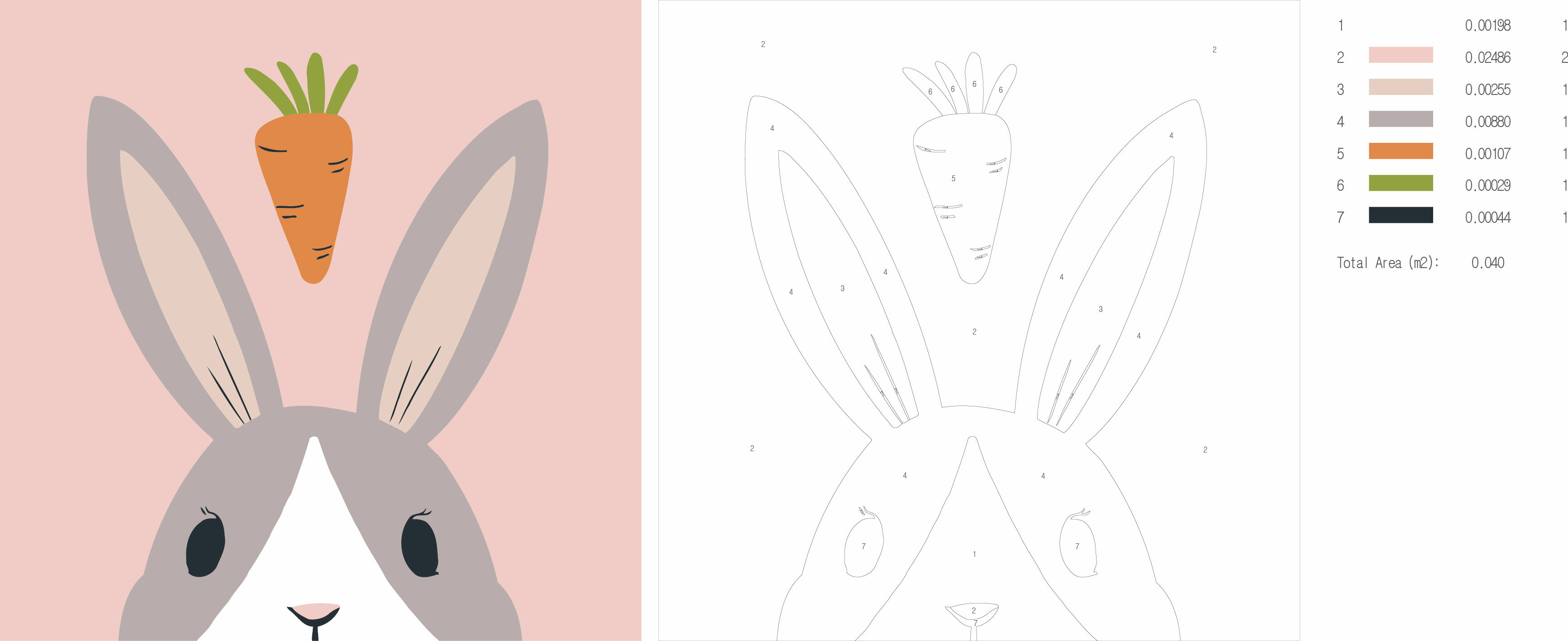 五、 畫布為便於繪圖時的輪廓辨識,會有陰影的設計,顏料中有一罐顏料是沒有標示數字的,要塗在畫布上陰影的部位。