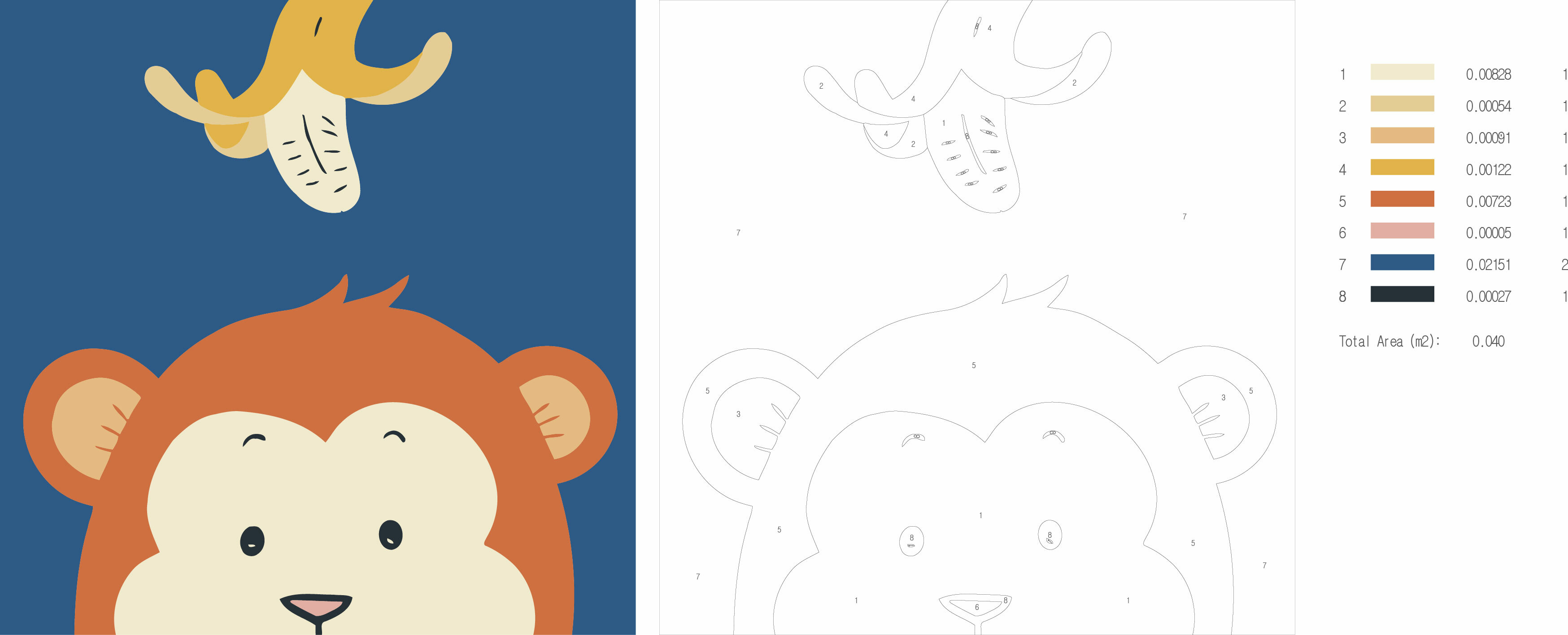 五、 畫布為便於繪圖時的輪廓辨識,會有陰影的設計,顏料中有一罐顏料是沒有標示數字的,要塗在畫布上陰影的部位。