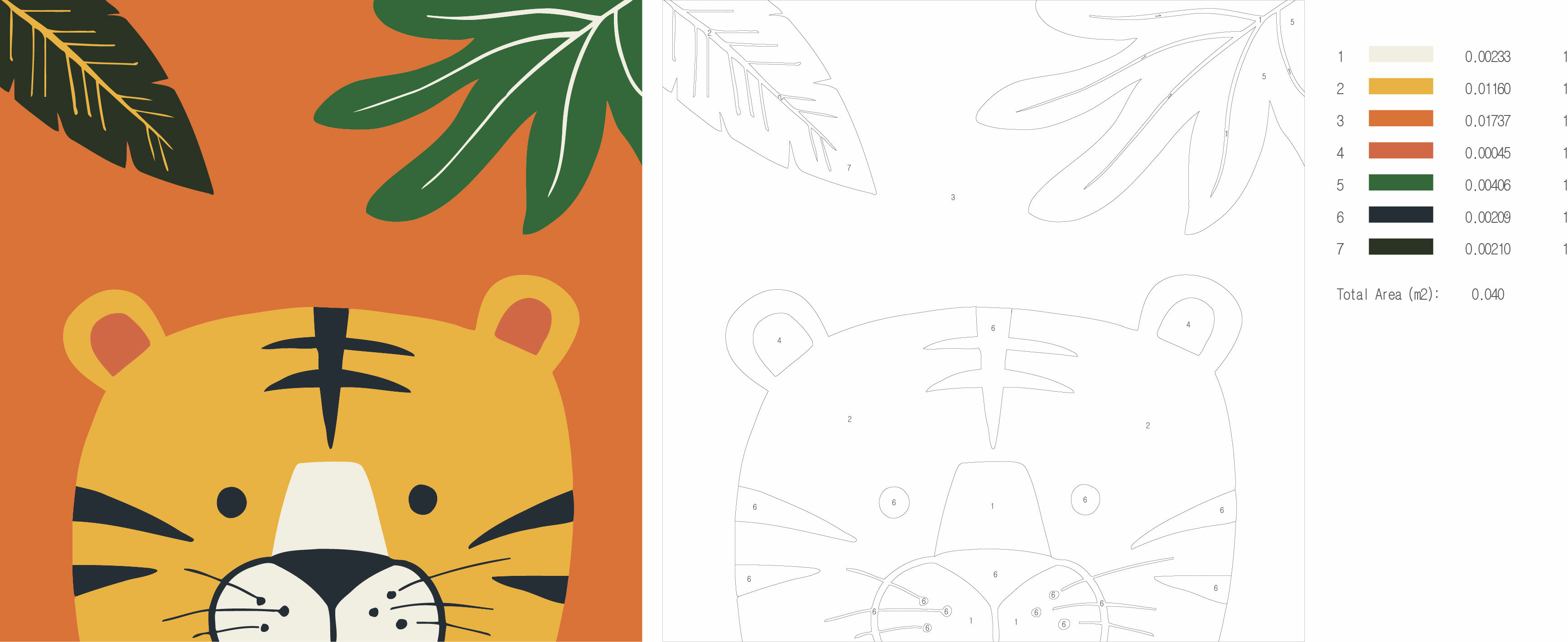 五、 畫布為便於繪圖時的輪廓辨識,會有陰影的設計,顏料中有一罐顏料是沒有標示數字的,要塗在畫布上陰影的部位。